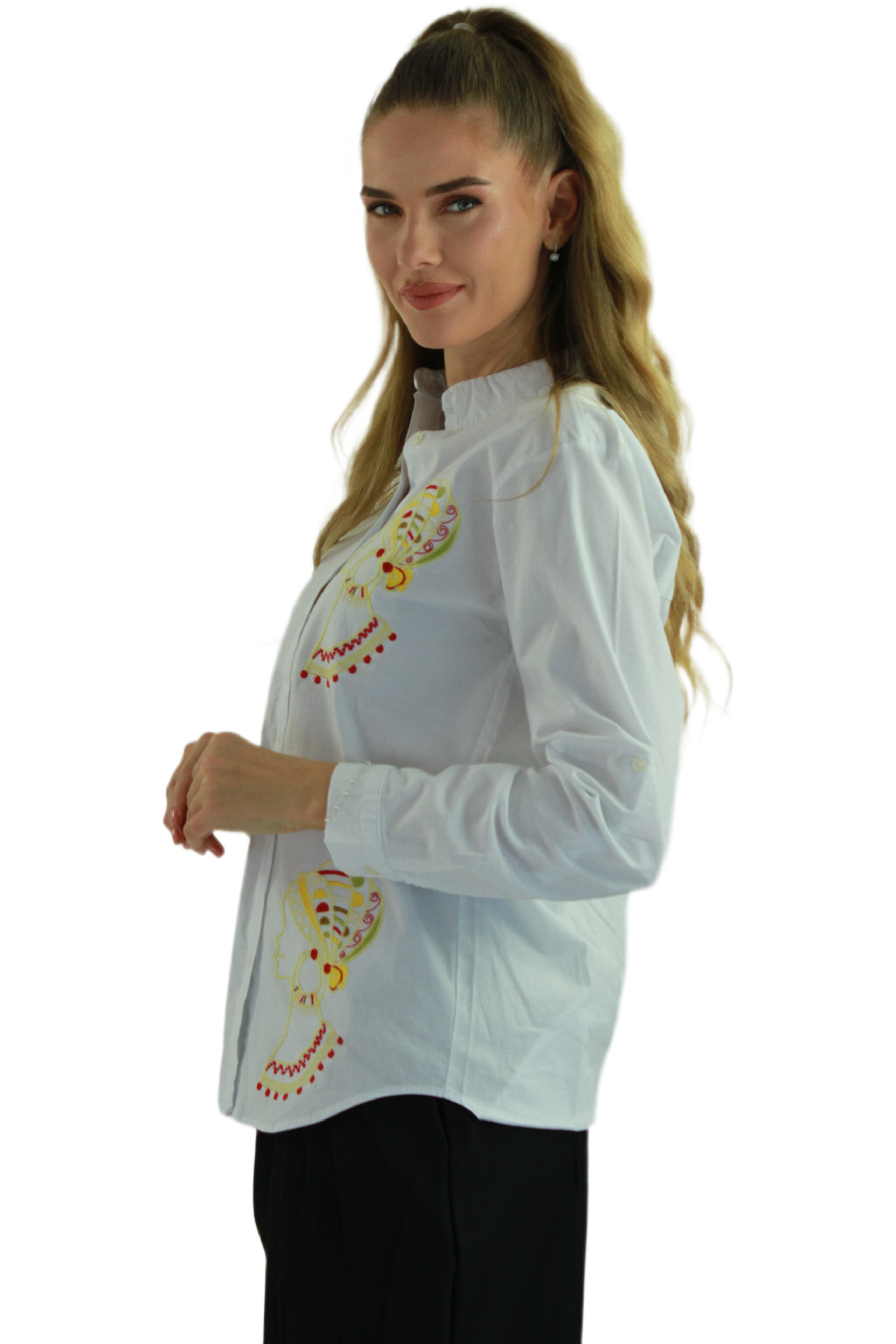 Camasa casual Elenora adauga un plus de eleganta si originalitate garderobei tale prin croiala lejera si broderia artistica. Este alegerea ideala pentru femeile care doresc un look modern, feminin si usor de purtat, potrivit atat pentru tinutele de zi, cat si pentru cele office sau smart-casual.